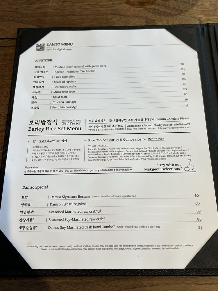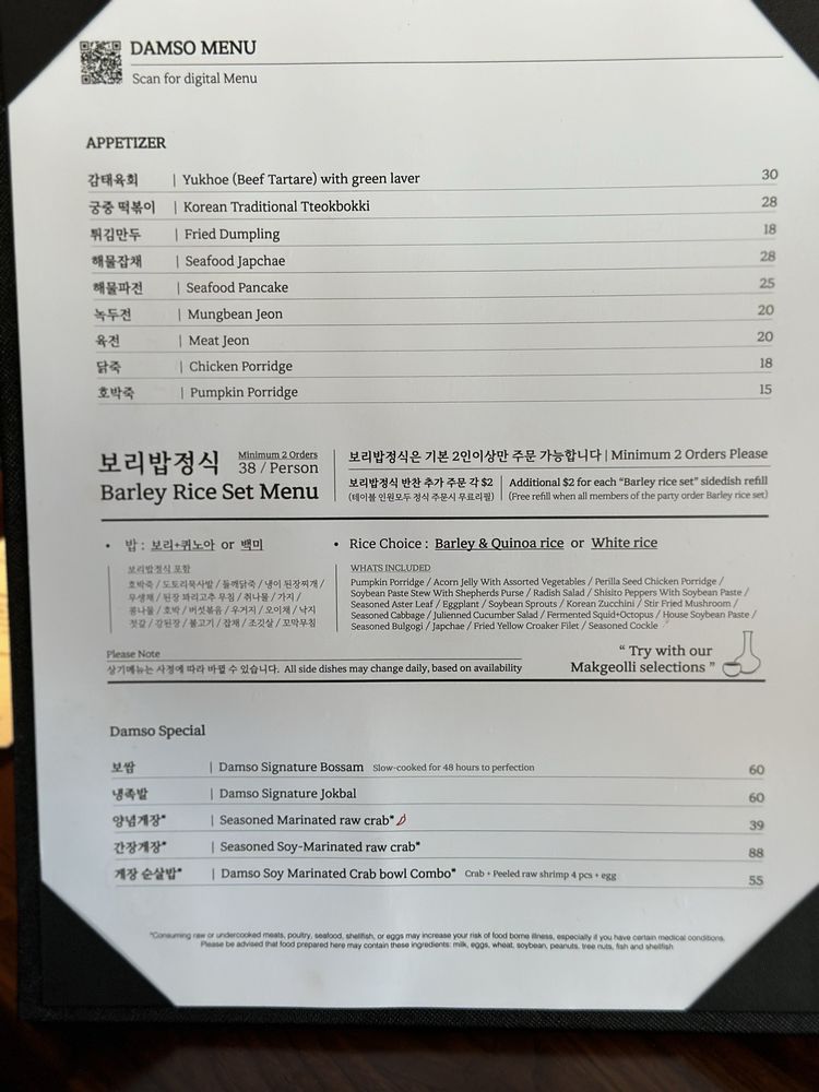 Introducing Damso, a Korean restaurant located at 2910 El Camino Real Santa Clara, CA. Damso offers a casual and trendy dining experience, with a diverse menu designed for sharing. The restaurant provides a top-notch customer service experience, ensuring all dishes are served simultaneously for maximum enjoyment. The menu features traditional Korean dishes like bossam, seafood pancake, and bulgogi mushroom jeongol, showcasing authentic flavors and generous portions. Customers rave about the delicious food, friendly staff, and the cozy, traditional ambiance of the restaurant. Whether you're craving spicy marinated crab, bossam, or barley rice set meals, Damso promises a memorable dining experience with a unique touch of Korean hospitality. Experience Damso's flavorful dishes and exceptional service for a truly satisfying meal.